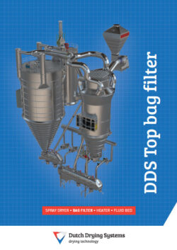 At Dutch Drying Systems we do everything we can to further refine the drying technique. For example, we have developed a unique type of filter for spray dryers: the DDS Top bag filter In the DDS Top bag filter, the air to be cleaned flows in from above the filter via four large inlets. This ensures an optimal distribution of the air flow in the filter. Advantages: optimal quality of the powder product, fewer malfunctions, guaranteed durability, less maintenance and therefore less production loss and less costs!